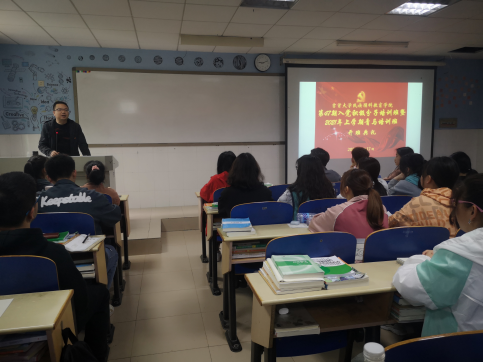 图为 学院党建组织员肖廷飞授课