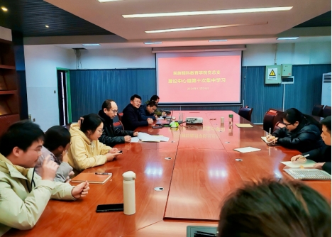 本网讯(通讯员 刘海孟)12月25日下午,我院党总支在张家界校区第三教学楼3321会议室开展2024年理论学习中心组第十次集体学习。院领导班子成员及全体教职工参加集中学习,院党总支书记李景军主持学习。