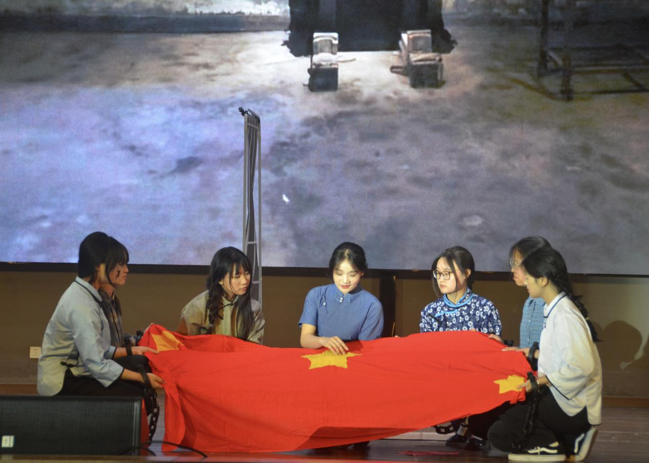 在比赛活动现场,学院2023级十三个班级分别上演了《百合花》《金陵十三钗》《紫荆花盛开》《梦见稼轩》《烈火中永生》和《觉醒年代》等剧目,内涵丰富,精彩纷呈。同学们通过深入挖掘语文课本中的思政元素,将中国共产党的诞生、长征、香港回归等历史经典事件进行自编自演,以舞台剧的表现形式再现在同学们眼前,通过演绎把毛泽东、辛弃疾、刘备、江姐等历史人物和革命先辈事迹重现舞台。其精湛的演技,惟妙惟肖的演出,令人不知不觉地沉浸到故事情节中去,让现场学生重温历史英雄人物的光辉事迹,并受到深刻地思想教育。