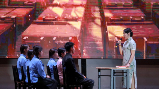 征程万里风正劲,奋楫扬帆再出发。晚会演出在我院石榴籽艺术团的开场舞《万疆》中拉开序幕,14个精彩绝伦的节目轮番上演。数位表演者在台上倾情演绎,深情的音乐,华丽的戏服,投入的表演,为全校师生献上了一份丰盛的文化厚礼。如预科三班的《昭君出塞》讲述了昭君作为和平使者,远嫁漠北草原、促进民族团结的传奇故事,唱响民族团结一家亲主旋律,谱写共同发展新篇章。预科九班的《纪念刘和珍君》演绎了普通人的英雄故事,盛世将颓,临渊而侧的日子里,曾有人身先士卒,扶大厦于将倾,诠释了真正的忧国忧民。比赛在我院石榴籽艺术团带来的民族服装走秀《华裳秀》中渐渐走向了尾声,各民族不同服饰汇聚了我国各地区多彩多元的服饰文化景观,展现出中华民族传统服饰种类丰富、内涵深厚、民族融合的特点,也将现场气氛推向了高潮。最终,预科1班的作品《定军山之欲火琼楼》和预科4班的作品《风声》在此次比赛中荣获一等奖。