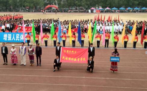 在开幕式上,我院两个校区的体育健儿身着鲜艳的民族服装,分别在入场式上组成特色鲜明的方队,喊着嘹亮的口号,迈着矫健的步伐,英姿飒爽,动作整齐,表演了别开生面的民族舞蹈,展现了预科学生的精神风貌,赢得了全场观众阵阵热烈喝彩,成为开幕式上的一大亮点。